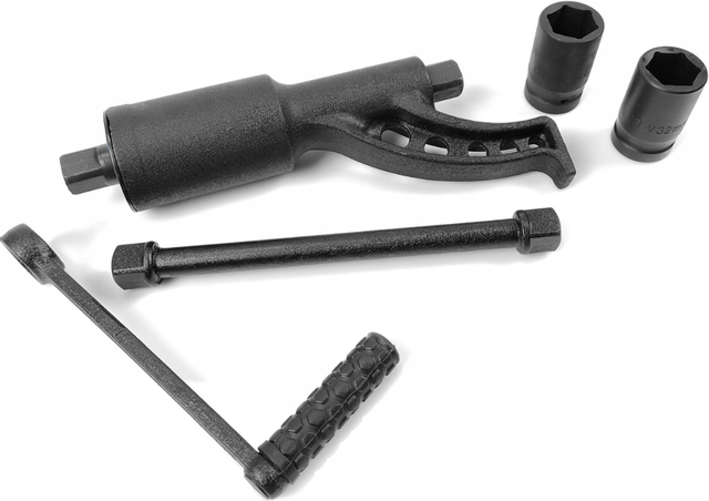 Завдяки компактним розмірам і простоті використання цей інструмент стає незамінним обладнанням для будь-якої вантажівки, вантажівки та різних типів сільськогосподарської або будівельної техніки та машин. Завдяки своїй конструкції гайковий ключ можна адаптувати практично до всіх поширених коліс вантажівок. Хвостовик "1" сумісний з усіма головками "1", які використовуються в інших інструментах. Просто приєднайте одне з двох доступних головок 32 або 33 мм, послабте гвинт гайковим ключем, а потім використовуйте подовжувач, що входить у комплект, щоб швидко відкрутити кожен гвинт.