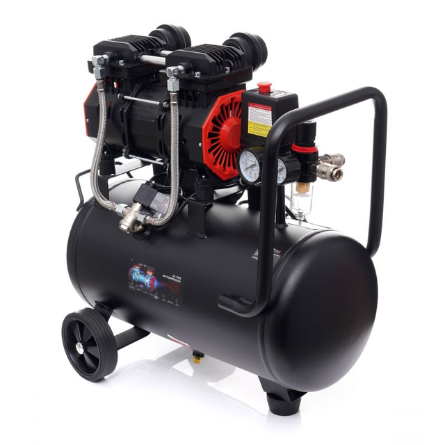 У порівнянні з традиційними ремінними або прямими повітряними компресорами, наш безмасляний повітряний компресор не потребує мастила і може забезпечити відносно чисте джерело повітря з низьким рівнем шуму. Зручна ручка для перенесення та великі колеса роблять компресор дуже мобільним. Пристрій відповідає навіть найвибагливішим очікуванням клієнтів. При правильному поводженні пристрій гарантує високу якість роботи і тривалий термін служби.