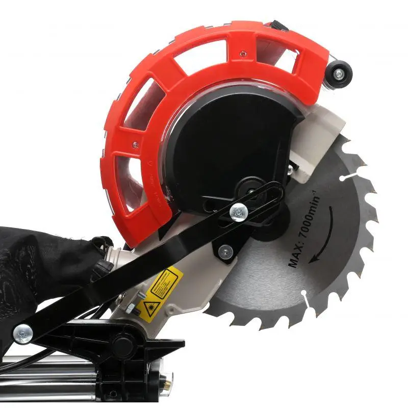 Двигун пилки генерує потужність 2200 Вт і швидкість 4700 об./хв, що забезпечує швидку та точну роботу. Торцювальна пила обладнана лазером, що неабияк покращує роботу та робить пропилювання точнішими.