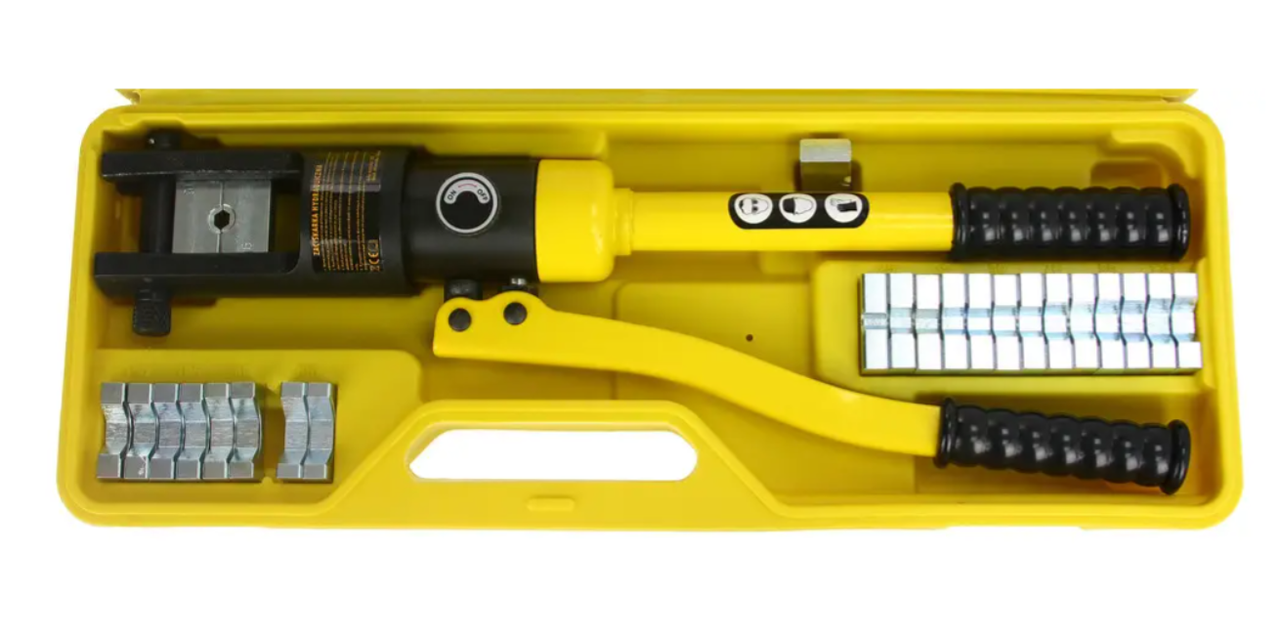 У компанії підключені електронні платежі. Тепер ви можете купити будь-який товар не покидаючи сайту.Ручний прес із гідроциліндром. Призначені для обтискання наконечників на електричних дротах або для опресування тросів. Завдяки гідравлічному циліндру обтискання великих клем не вимагає зусиль. Прес має обертову головку. Довжина кримпера 55 см. Гідравлічний прес — дуже корисний пристрій у ситуаціях, коли потрібен високий тиск і точність. Він успішно працюватиме під час опресування наконечників на дротах у майстернях, на станціях технічного обслуговування й багатьох інших робочих місцях.
